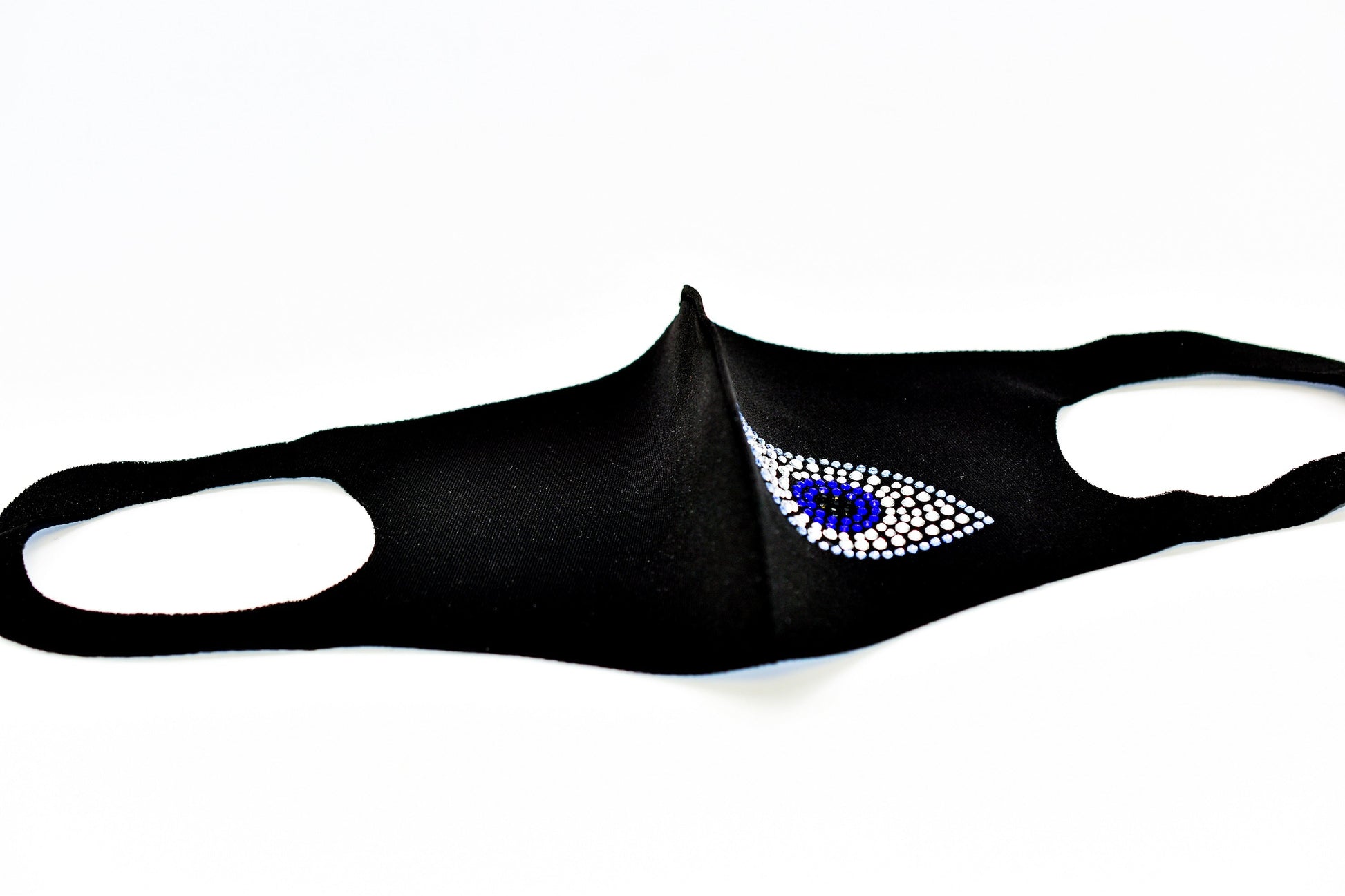 Medical masks are pretty ugly, so get stylin' with this super cool fashion mask! Black fabric mask with faux crystals making an Evil Eye print gives you a super cute bohemian vibe. Wearing an Evil Eye helps you to ward off evil and negative energy (basically bounces negativity back to whomever is putting off any negative juju)