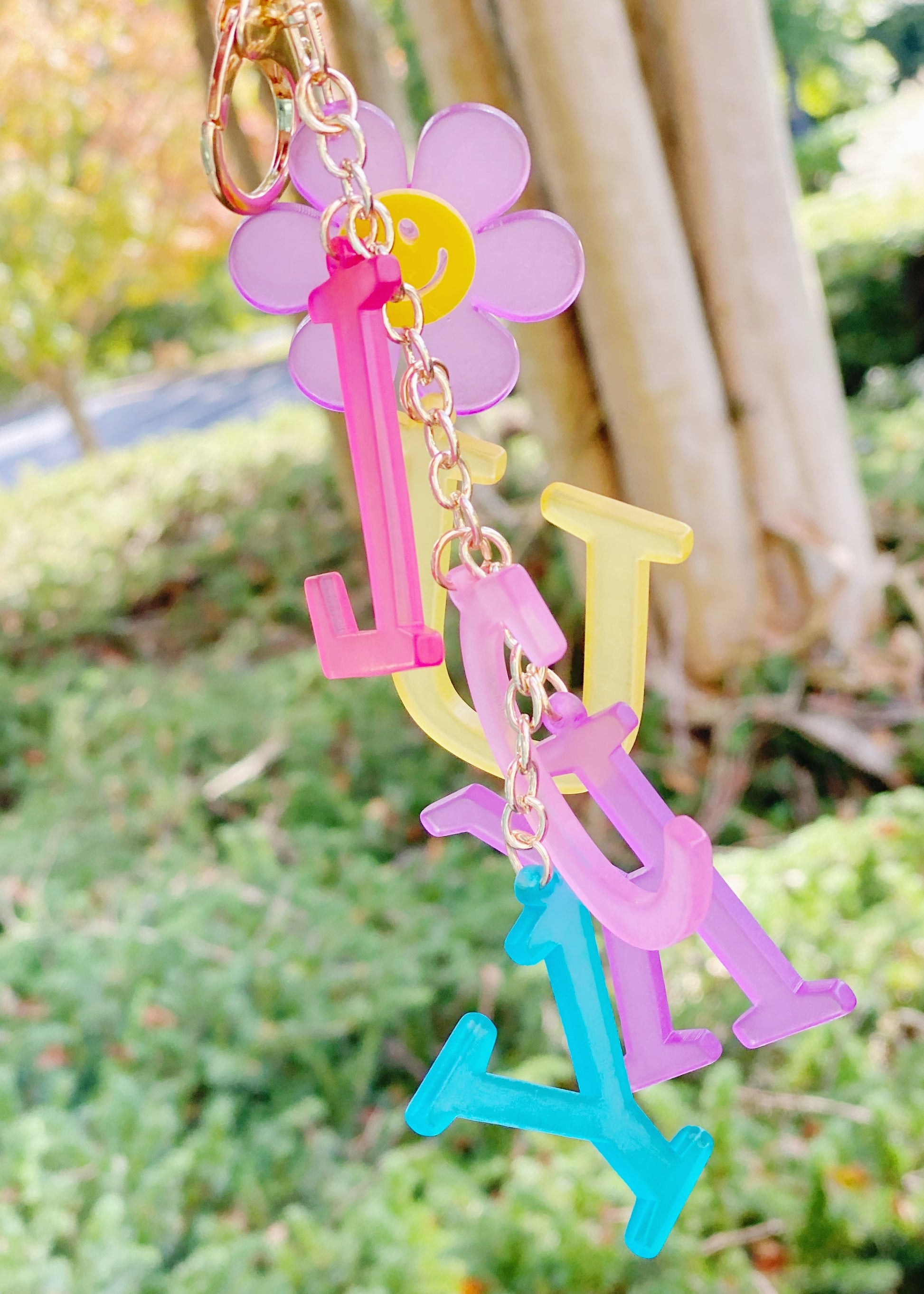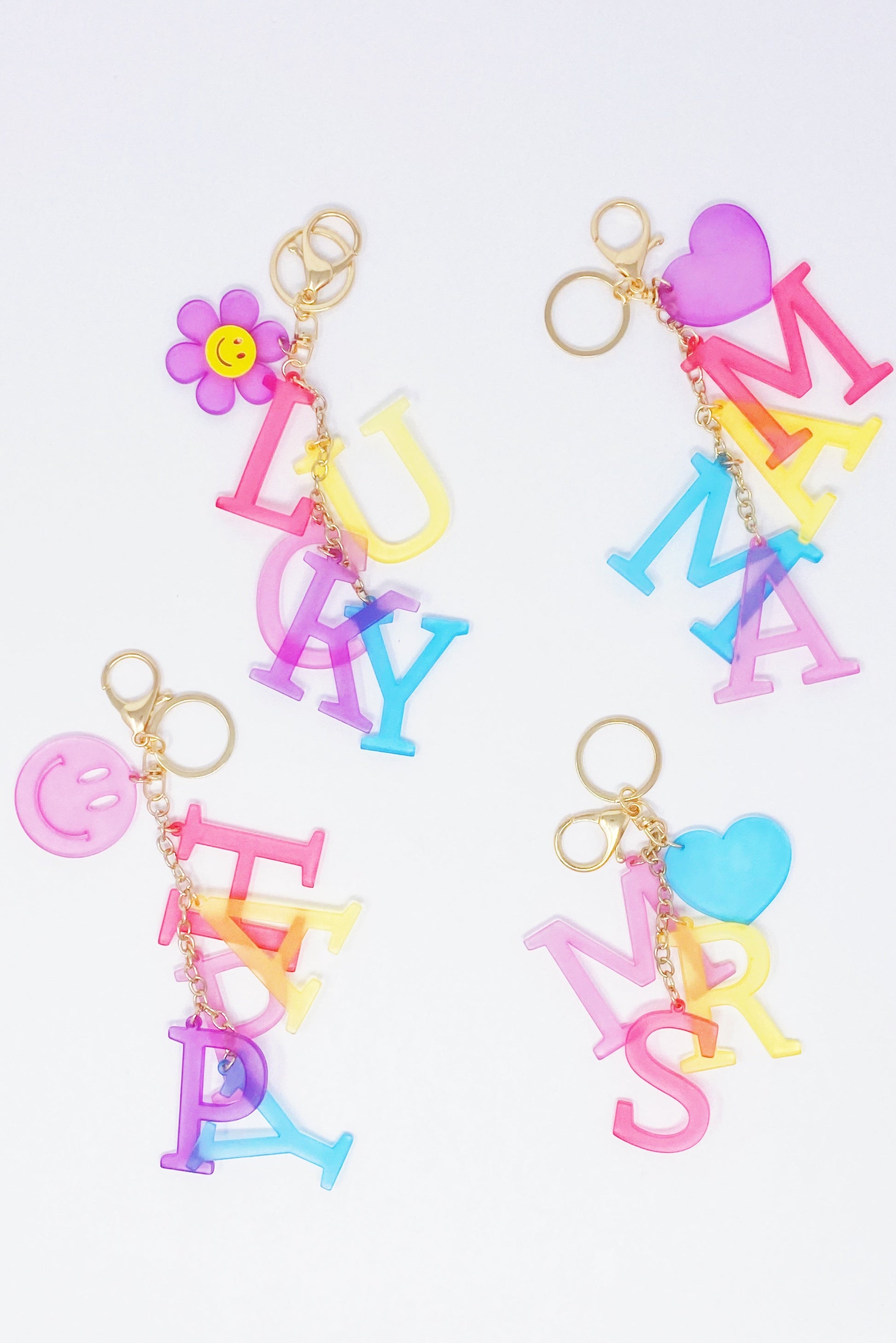 Absolutely beautiful key chains with our favorite words hanging with matching symbol. Each letter of the word beautifully cut out and put together in tier, so fun to hold it and jingle it!