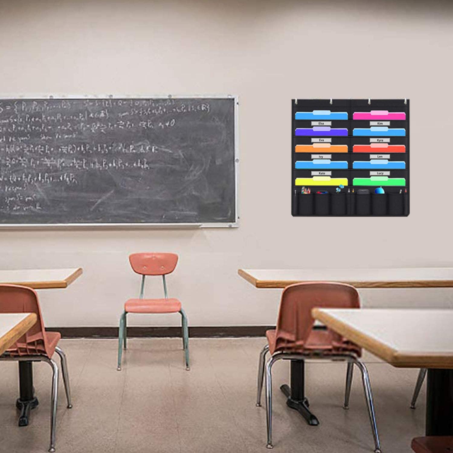 Hanging File Holder Organizer Rack 10 File Pockets + 10 Supply Pockets