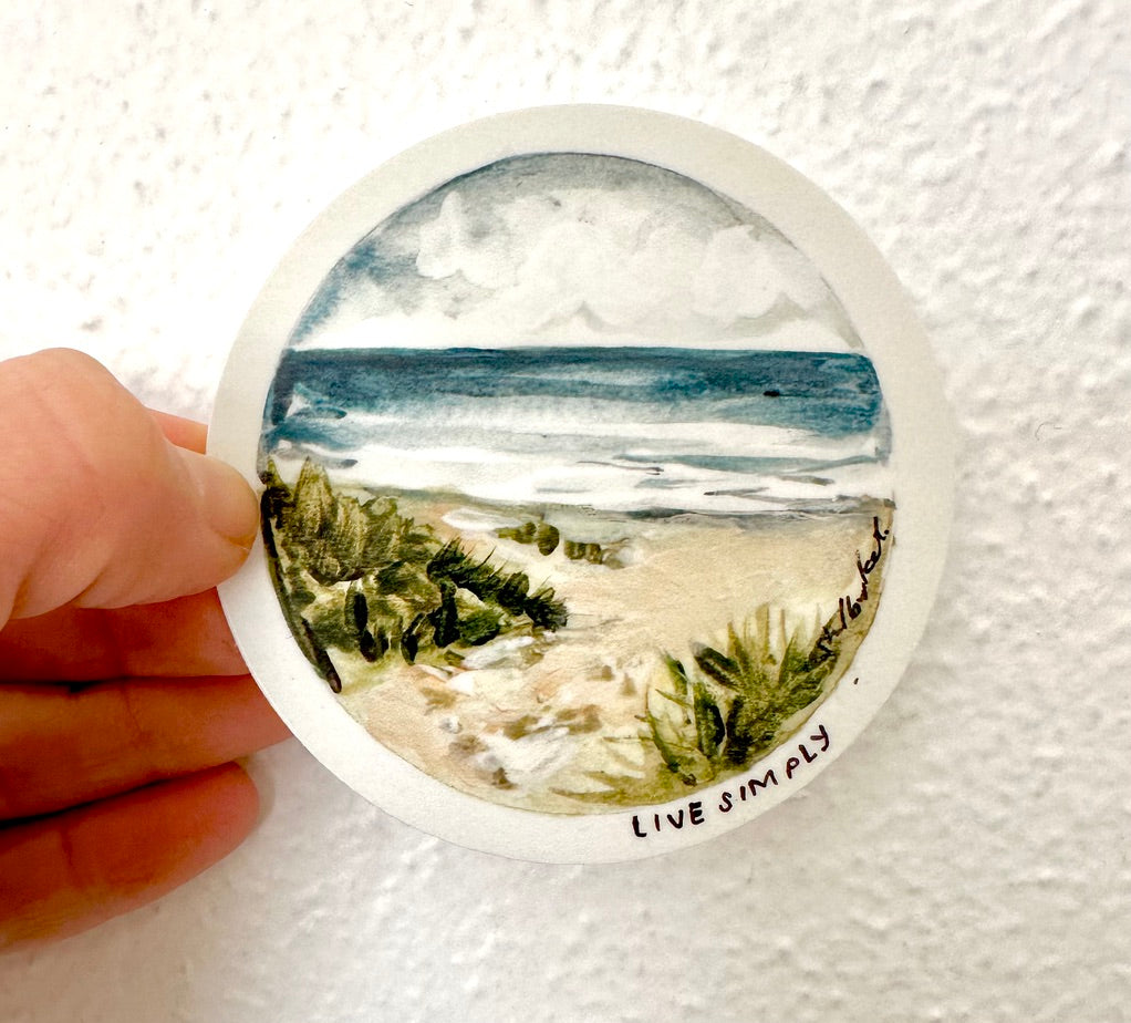 We live in a culture of busyness and this decal is a lovely reminder to slow down and take a deep breath. Add it to your water bottle, laptop, phone case, car, or any surface where it can remind you to step back and rest in life’s simple pleasures.