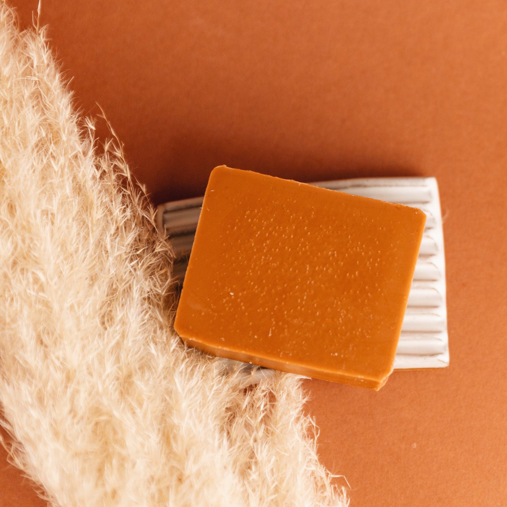 Ingredients: Organic Fair Trade Coconut Oil, Organic Extra Virgin Olive Oil, Sodium Hydroxide, Rice Bran Oil, Organic Sunflower Oil, Organic Shea Butter, Organic Castor Oil, Cinnamon Leaf Essential Oil, Black Pepper Essential Oil, Patchouli Essential Oil, Moroccan Clay